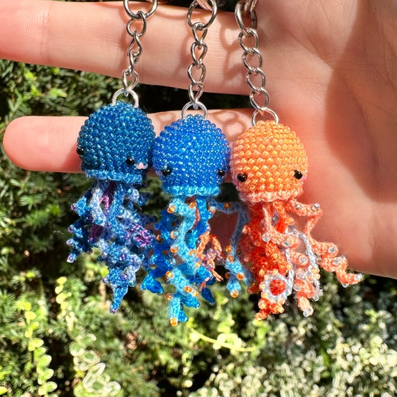 Bead Crochet Mini Jellyfish Keychain With Different Color Etsy